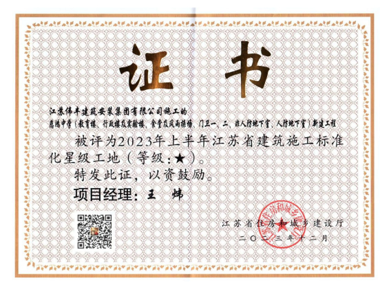 工程获奖证书